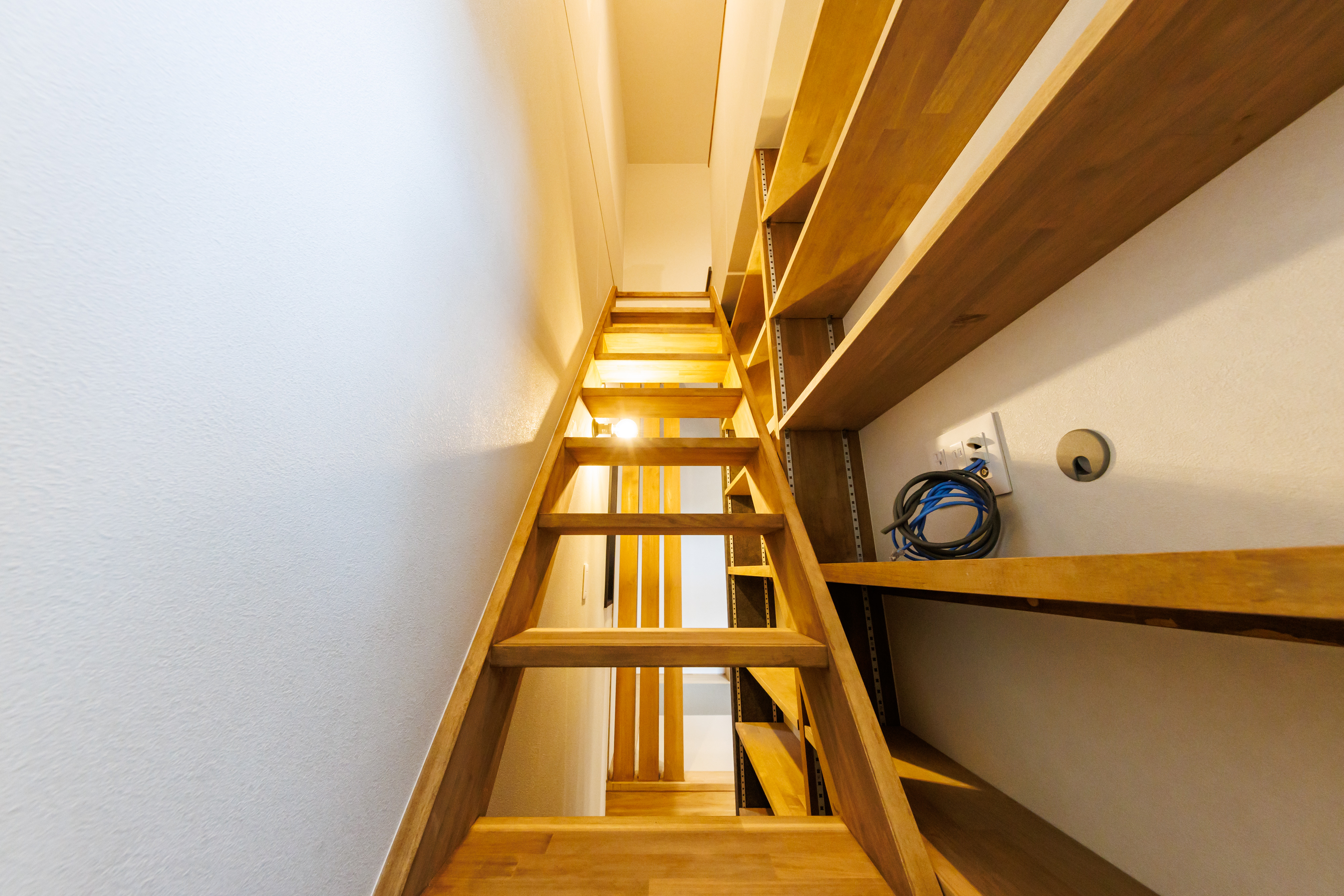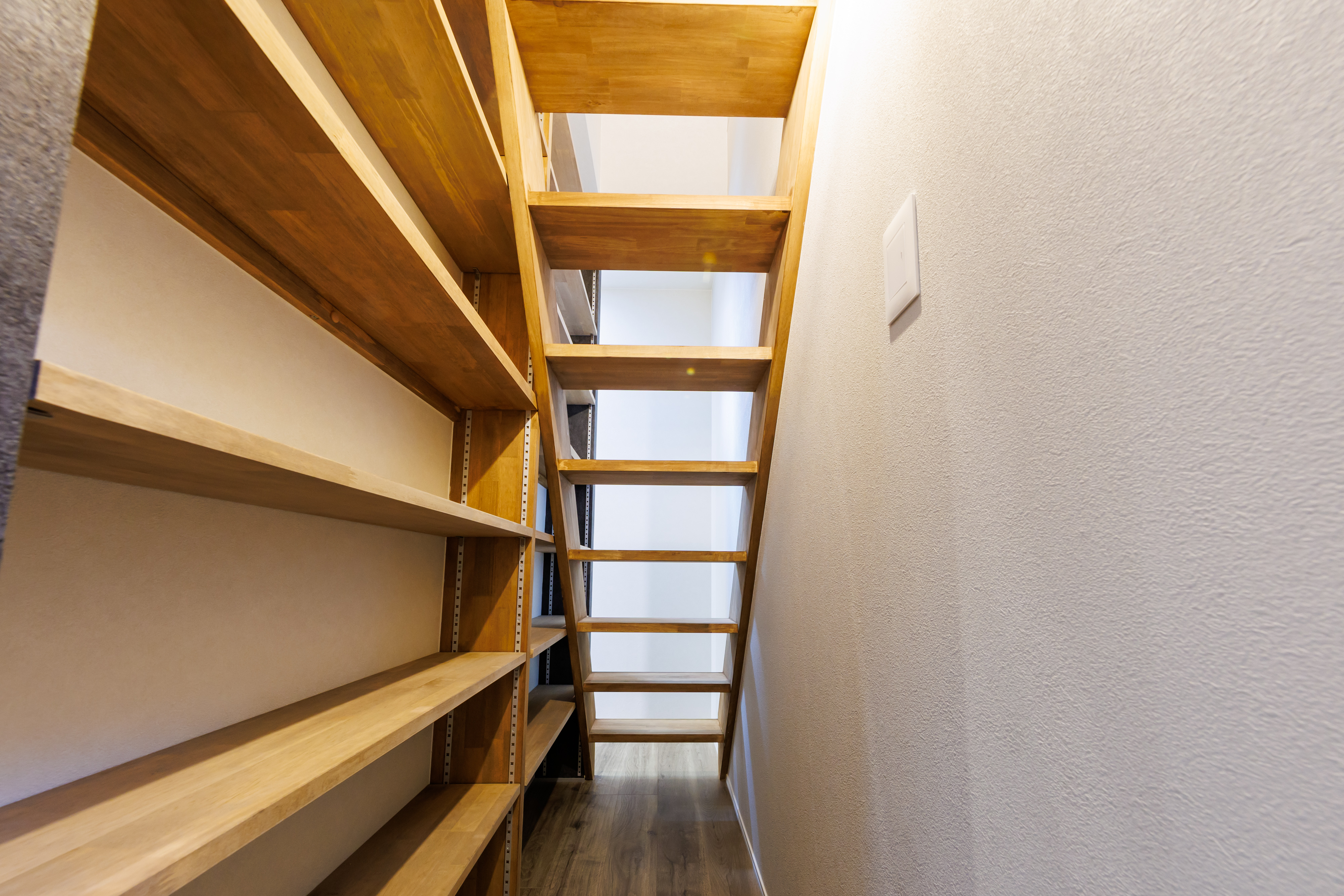 ↑トップ写真は、910㎜幅の収納兼ロフトへの階段スペースです。
