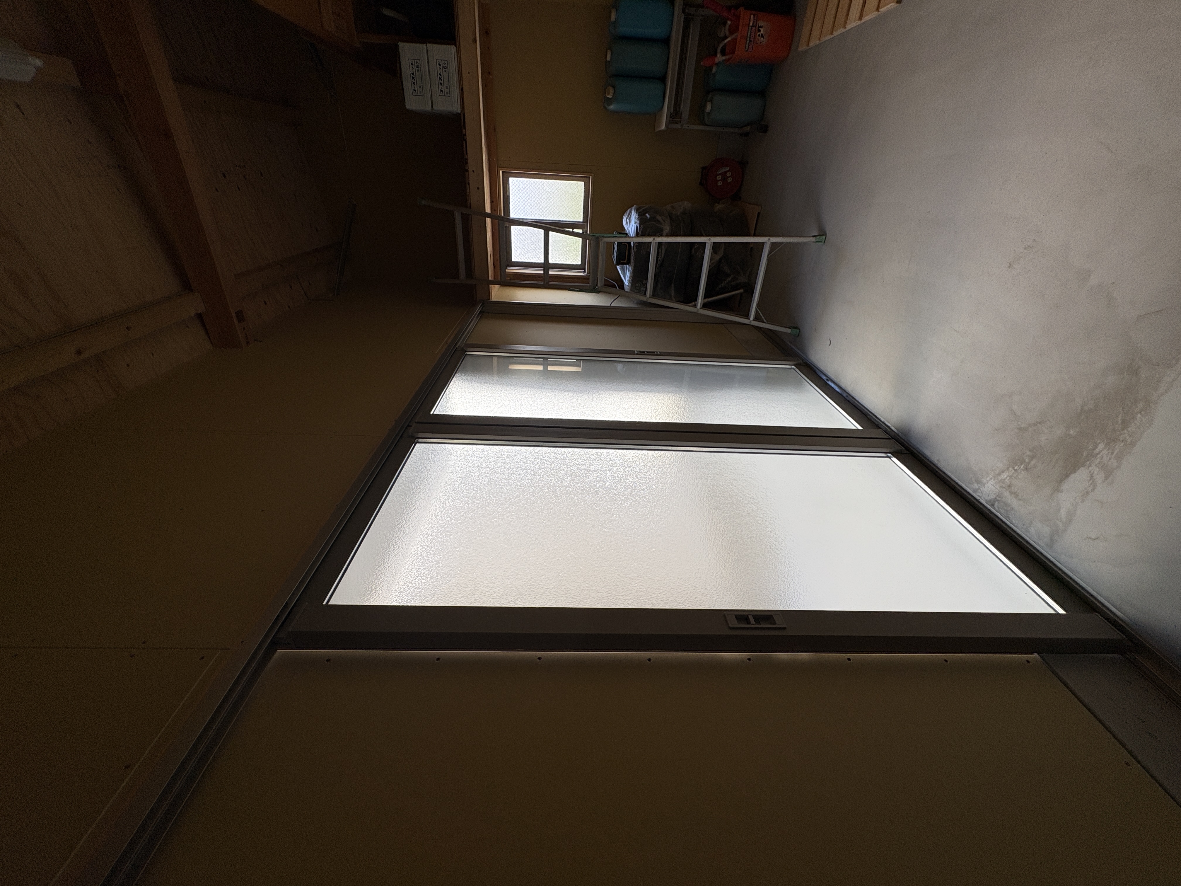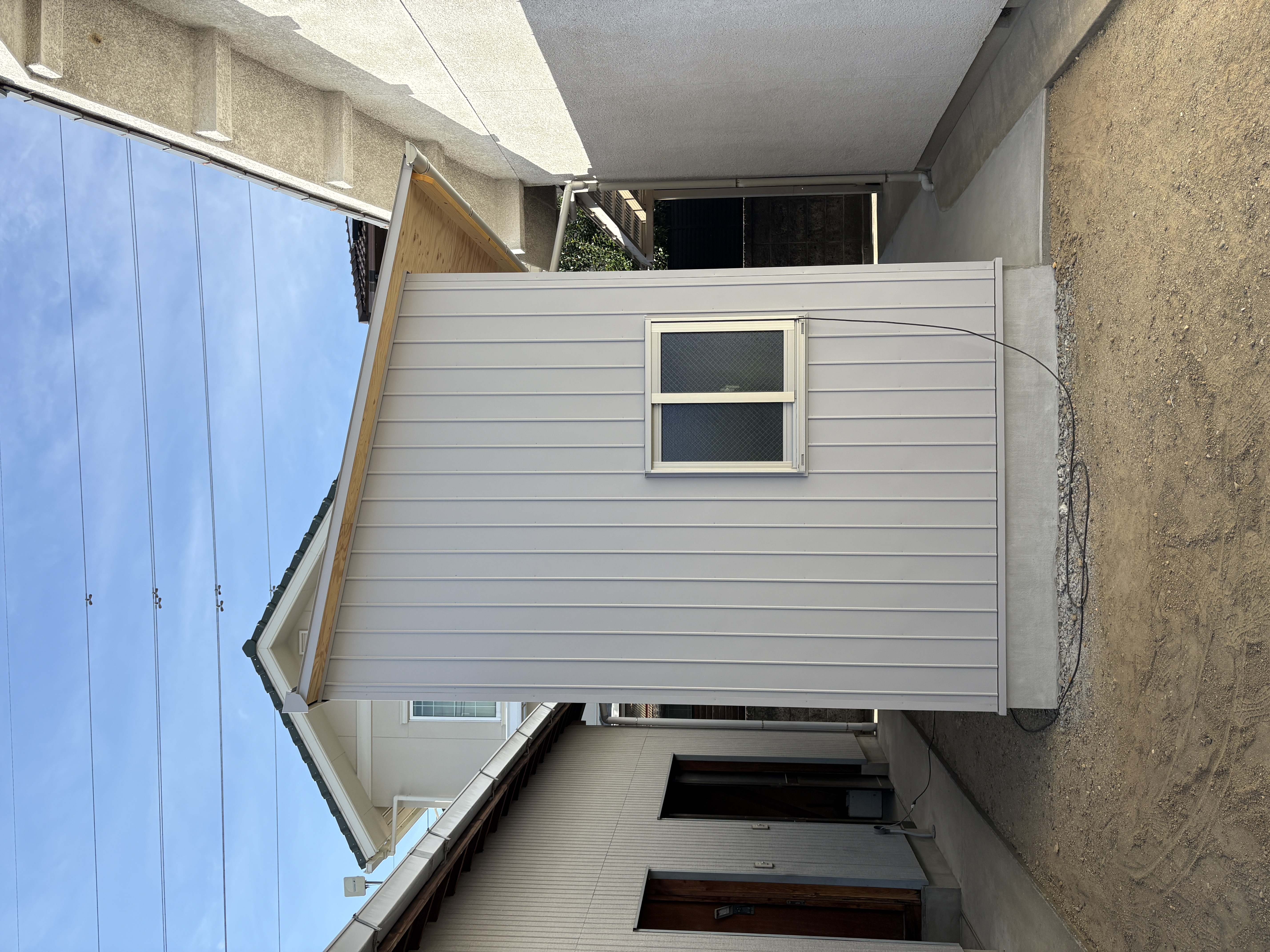 母屋の近くに必要最低限のモノが収納できる倉庫が完成しました。
