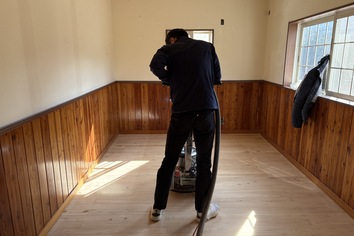 トイレ、洗面、浴室のリフォーム床のサンディング内窓設置、断熱材施工